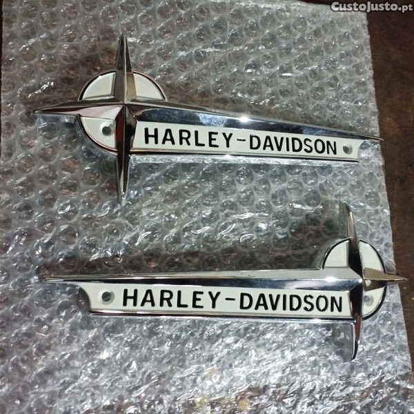 vendo 2 emblemas de metal originais Harley Davidson novos nunca usados são para meter nos depósitos de gasolina para mais informações mande mp ou ligue para o número do anúncio