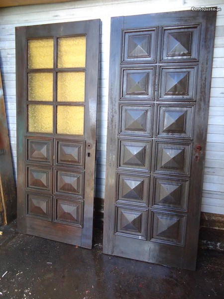 2 portas 2,12 cm de altura x 0.96cm de largura em pau rosa madeira exotica 80 euros cada com aros uma porta de duas folhas 2.08 x 1.03 100.00 euros