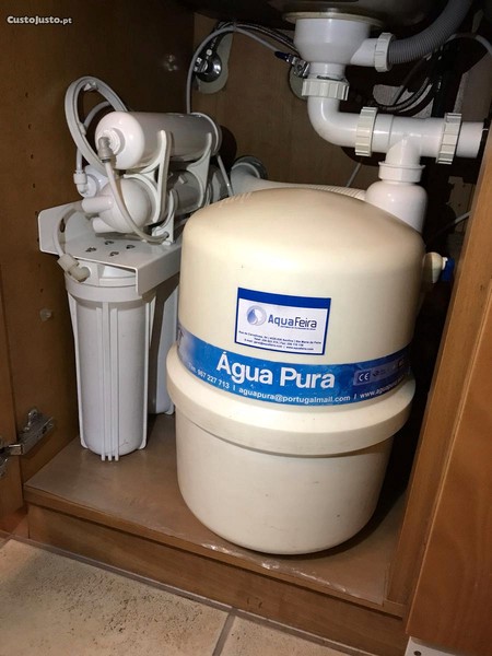 Vendo purificador de água com 3 filtros verticais, 3 filtros horizontais e chave de filtros.