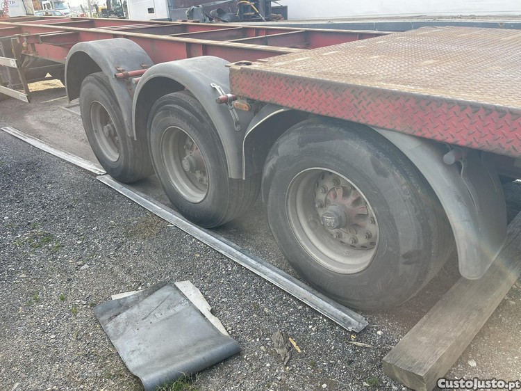 Semi reboque porta contentor 2 de 20 - 1 de 20 quasi ao meio - 1 de 40 travão de tambor eixo BPW suspensão pneumática eixo de levantar pneus 385/65r22.5 com 45/65% de piso.