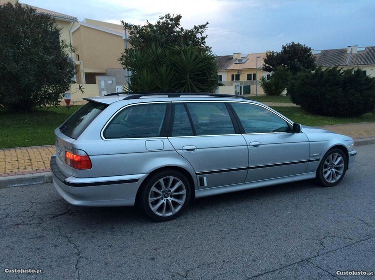 Lamentavelmente vai para peças por acidente BMW touring 530 D E 39 Ano 12-1999, Klm 265000 km, pintura com alguns riscos y toques de parquear na rua, caixa automática y secuencial, toda revista de mecânica, acabamentos do interior em alumínio escovado, jantes 17 por 8 a frente y 8.5 atrás homologadas no livrete, espaciadores as 4 Rodas, aleron de teto, vidros eléctricos, teto de abrir em vidro y eléctrico, asientos da frente totalmente eléctricos com 3 memórias y aquecidos, volante multifunções y em couro, volante com regulação em altura y profundidade eléctrico punho de alavanca de velocidades em couro y metal, estofos em couro preto tapetes em veludo da BMW novos, tapetes em borracha de BMW novos, alarme de origem xenon de origem piscas traseiros brancos sensor de estacionamento de origem, cortina traseira TLF de origem BMW, rádio CD novo JVC Bluetooth com entradas USB y IPHONE para música com equalizador, sub woofers, amplificador de 4 canais, colunas novas espelhos retrovisores antiencandecente eléctricos com memória y revativeis, espelho retrovisor interno antiencandecente, porta copos a frente y atrás, punteira de escape em inox, a nível mecânica foi feita uma reviçaon em geral tendo levado a substituir amortecedores novos, pendurais, os 4 casquilhos ocinoblocos do charrio traseiro, todos os braços da frente y vieletes da direção novos calços y discos de travões novos radiador y reservatório da água novos viscoso da ventoinha novo turbo NOVO, óleo y filtros em geral novos.