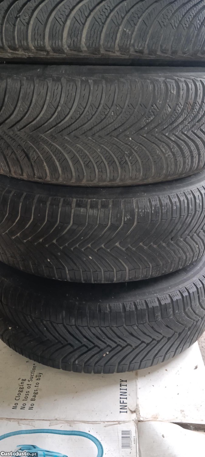 Vendo jantes R15 de 5 furos com pneus de inverno Michelin usados em bom estado . Retirados de um Mercedes B