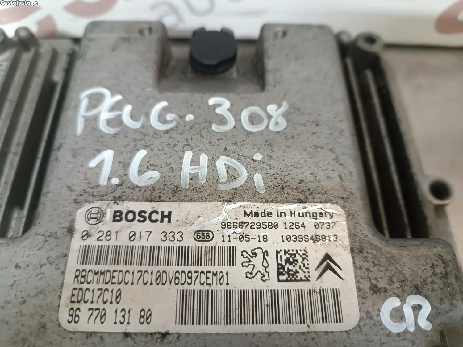 UNIDADE / CENTRALINA DO MOTOR PEUGEOT 308 1.6HDI REF. 0281017333 EDC17C10 9677013180