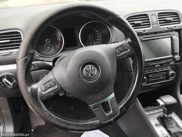 Volante multifunções em pele original tipo F1 com patilhas para trocar velocidades proveniente de VW Golf VI highline de caixa automática, modelo de 2010.