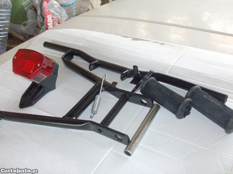 pousa-pes condutor , 20 euros -- par borrachas condutor com marca , 20 euros --- descanço +tubo + mola , 30 euros --- farolin , 23 euros -- lança escape , 20 euros