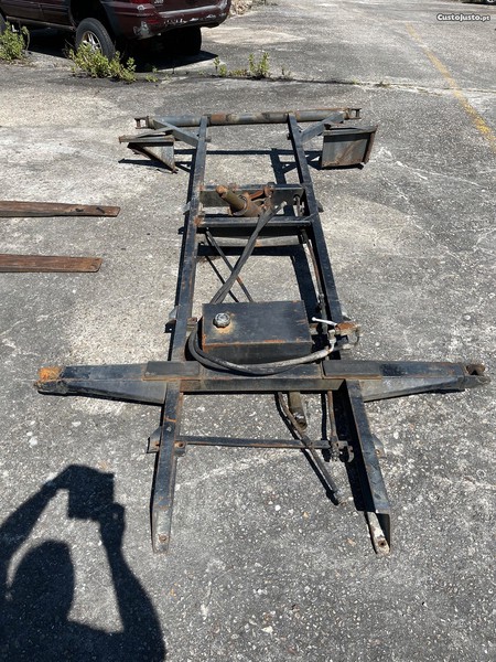 Chassi trilateral com macaco y depósito usado para caixa basculante com 3,50 até 4 mt, largura de chassi tem 77 cm de fora a fora, pode colocar em carrinha atrelado etc.