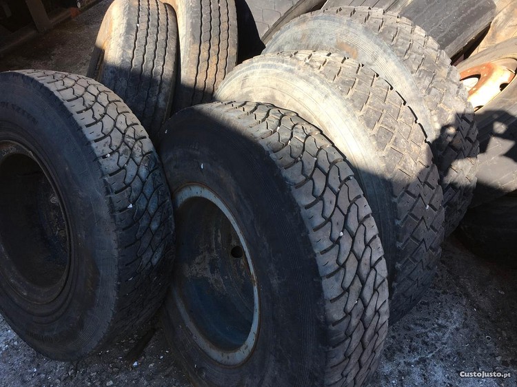 Vários pneus usados medidas 9.00r20 10.00r20 11.00r20 12.00r20 com 60/90% de piso, u preço com 50% 50 euros preço 70% 70 euros de 90% 100 euros só do pneu si quiser a jante mais 40 euros ou trás a sua jante, também temos para giratória de pneus.