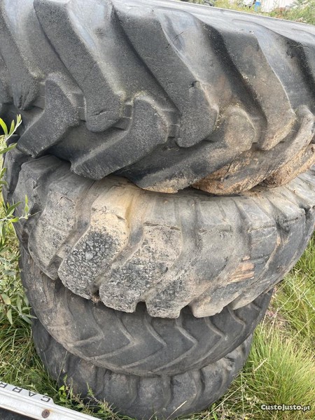4 pneus usados originais medida 17.5-25 com 40/45% 300 euros os que tem 70/75% 500 euros preço por unidade a jantes não incluídas si quiser a jante mais 200 euros cada, serve para vários modelos de máquina pá carregadora retro escavadora dumper Empilhador telescópio grua agrícola etc.
