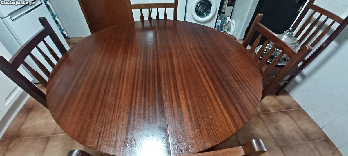 a mesa tem 1,10m quando está na forma redonda e 1,44 quando se abre e fica oval