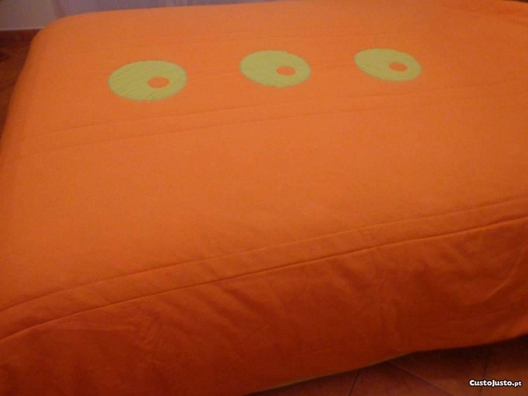 Pode ser vendido com 2 almofadas com uma face laranja e outra verde (novo) ou apenas o edredom