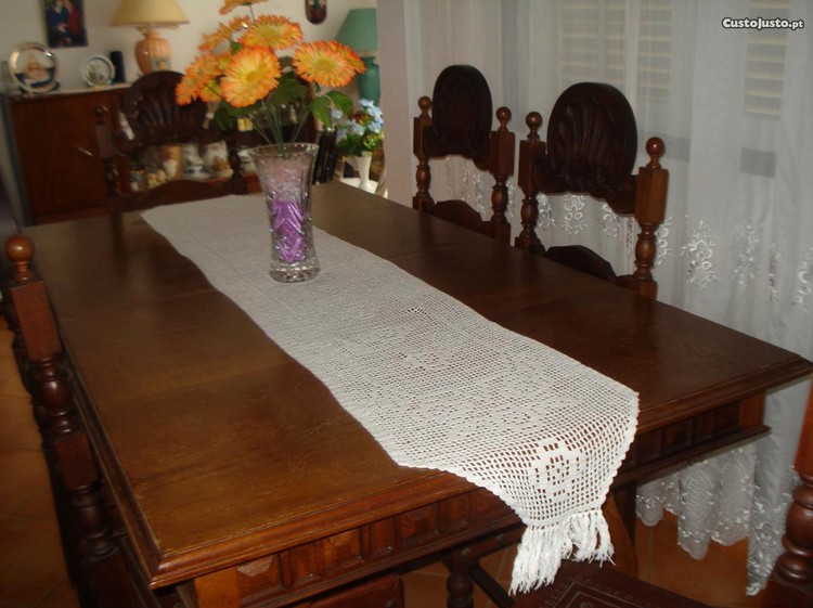 Mesa e sete cadeiras. Madeira trabalhada e de boa qualidade . A mesa tem 1m65cm+50cm de abertura por 90cm de largura.