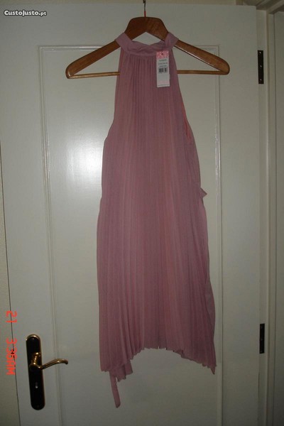 Vestido Novo com Etiqueta da Topshop, cor rosa velho, plissado, pode ser usado solto ou com cinto.