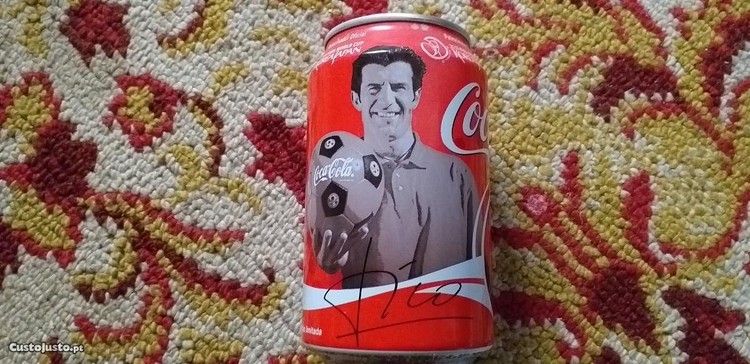 Lata de Coca-Cola exclusiva do Mundial de Futebol da FIFA Coreia-Japão de 2002, com Luis Figo e inclui a sua assinatura.