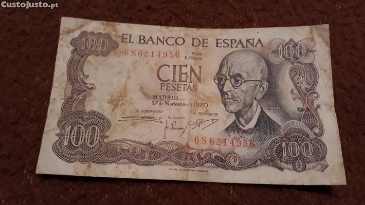 Nota 100 Pesetas Espanhola - 1970 - portes incluídos