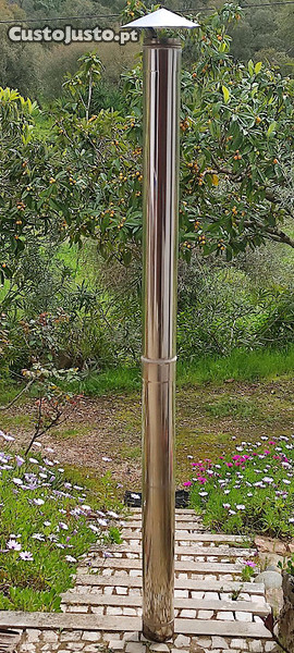 Vendo dois tubos de metro em inox com diâmetro 110 com chapéu, mais um tubo de metro e outro com 0,60 e curva de 45 em preto esmaltado, também 110.