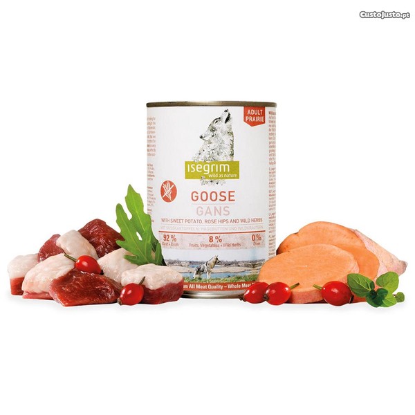 Alimento para cães inspirado nos hábitos alimentares do lobo, oferece nutrição completa com carne fresca, vegetais, frutas e ervas.