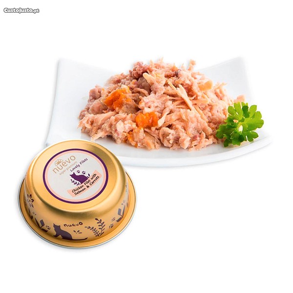 2 x filé de frango com salmão, cenouras e óleo de salmão