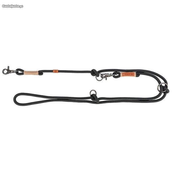 A Trela Ajustável "BE NORDIC" com corda redonda ajustável em 3 posições, com posição da argola continuamente ajustável, graças aos nós e com mosquetão.