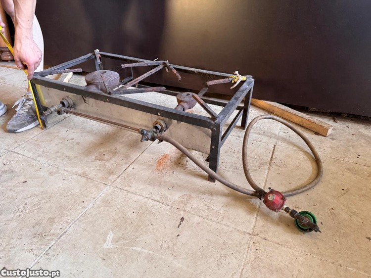 Este fogão contém apenas 2 bocas (uma maior outra mais pequena) e algumas marcas de ferrugem (uso) e é composto por ferro.