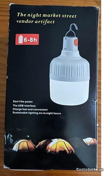 Lâmpada Led de alto brilho com carregamento USB e com 3 modos de iluminação, pressione o interruptor várias vezes, mude por sua vez: "alto brilho, baixo brilho, piscando" os 3 modos. A bateria tem duração para 6h a 8h, tornando perfeito para atividades ao ar livre, como camping e pesca.