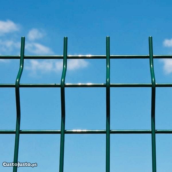 Os painéis são constituídos por arame de aço galvanizado electrosoldado, com pregas de reforço horizontais.