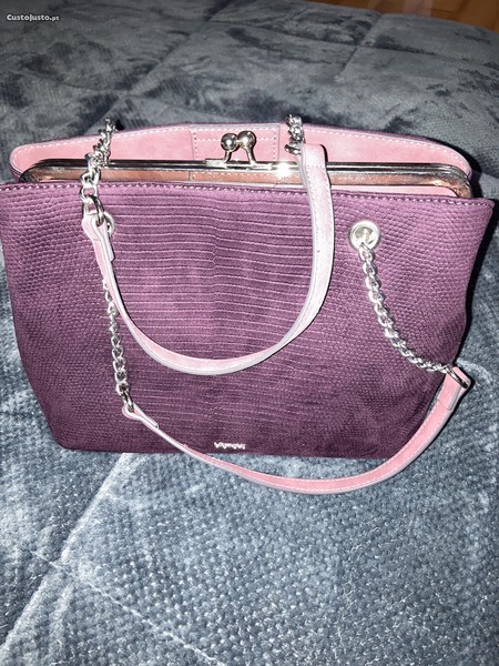 Mala Shopper bordô com fecho de boquilha central e dois compartimentos com fecho de botão.