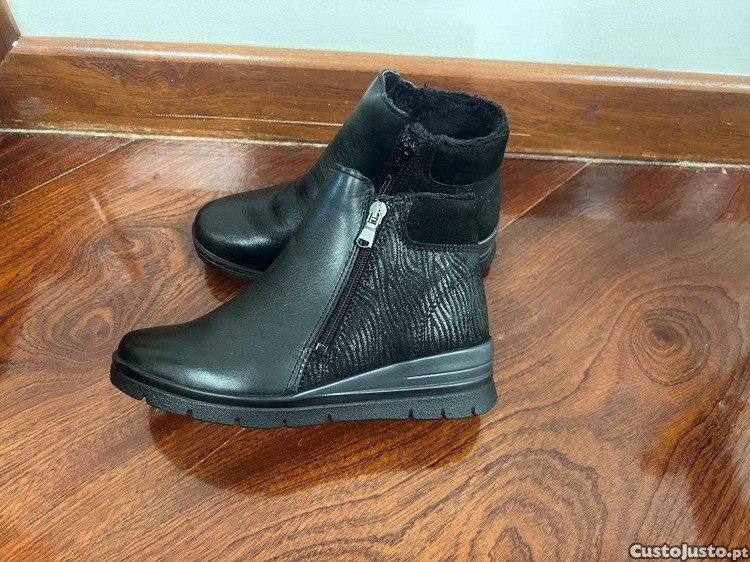 Preço: 60 €Botas com plataforma anatômica, forro acolchoado e couro natural combinado na cor preta em tamanho 36,40
