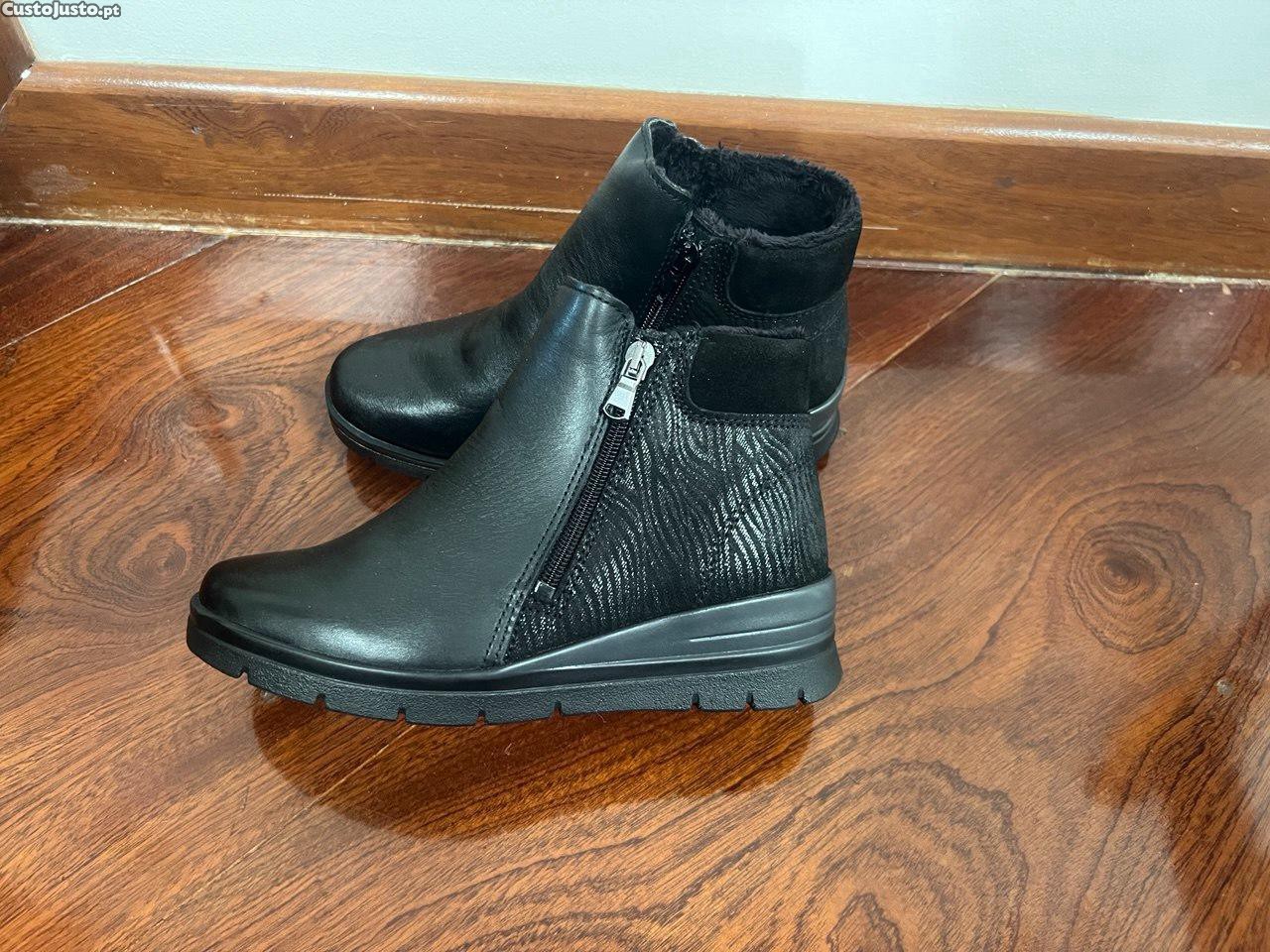 Botas confortáveis e estilosas em couro combinado. Calçado totalmente novo com etiqueta. As botas são vendidas sem caixa, por isso o preço é 60 , enquanto na loja custam 90 . Se tiver alguma dúvida, escreva ou ligue, terei prazer em responder.