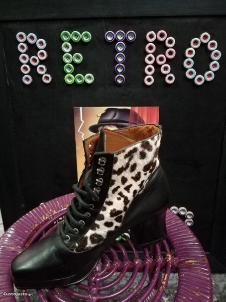 Botas El Dantès originais pretas em pele com aplicação de pêlo animal natural tamanhos 35/36 (NOVAS)