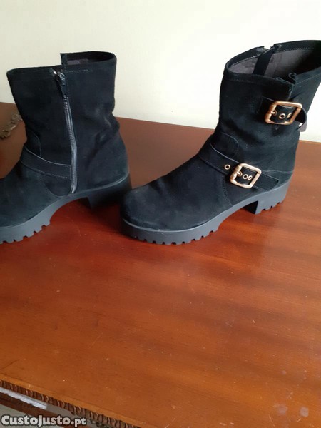 Botins, pretos, em camurça, n 39, novos, por 40,00