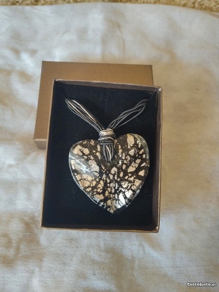 Colar com coração em vidro.
