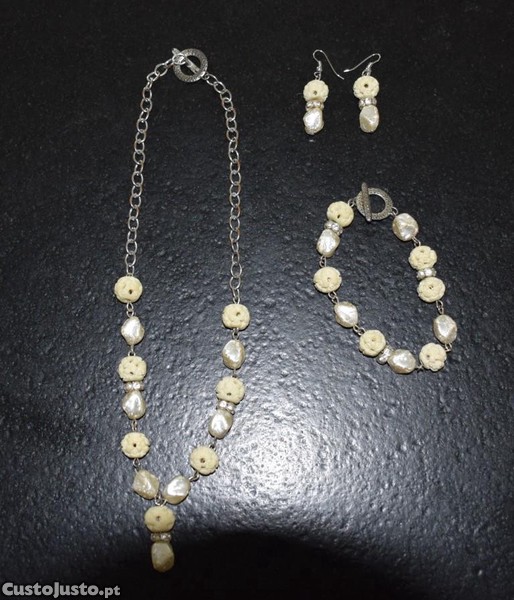 Conjunto colar, pulseira e brincos, vintage e handmade