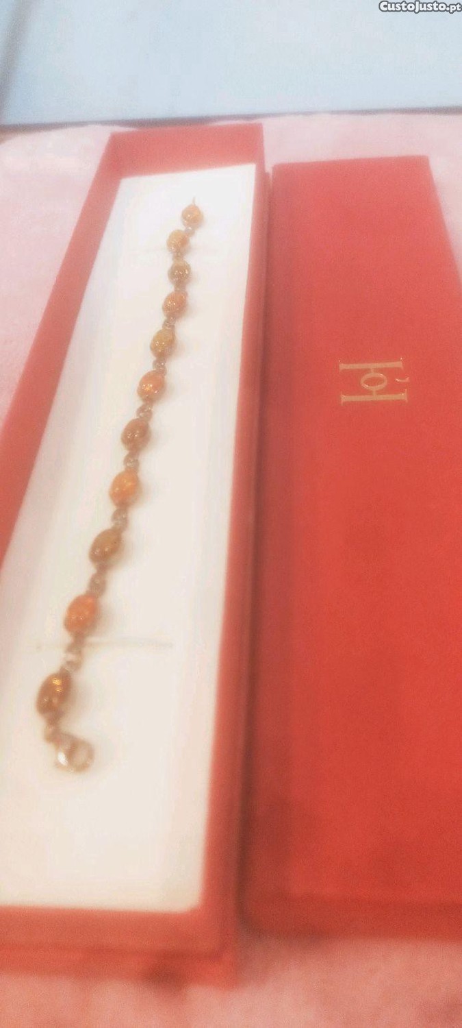 pulseira de prata marca Histoire D'Or com 3 pedras de âmbar