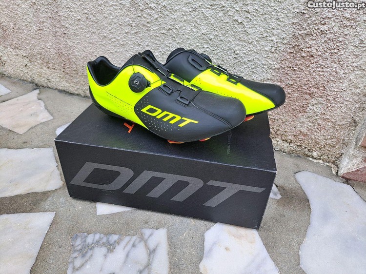 Vendo sapatos de ciclismo de estrada DMT R3, em preto e amarelo fluorescente, tamanho 41
