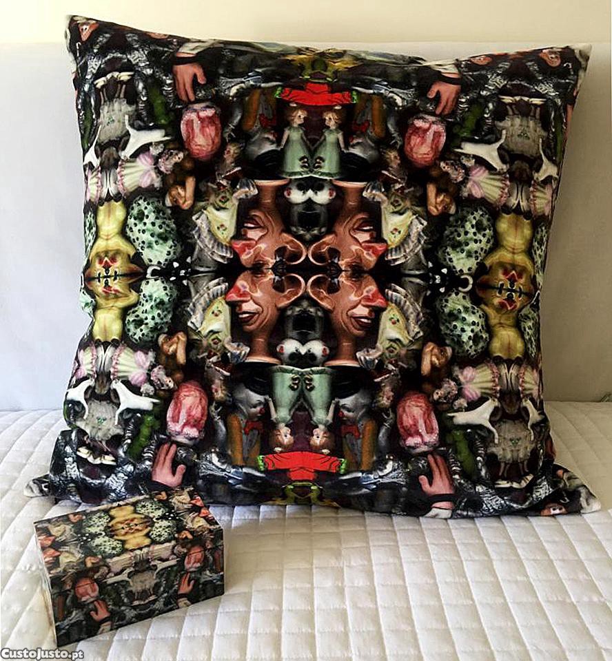 * Vendo 1 fronhas em veludo fino com zip a estrear. (64x64cm) * 2 caixas em bambu com o mesmo padrão (15x9 cms) * Material de excelente qualidade, agradável ao toque e com cores vivas. * Novas - Nunca foram usadas * Entrego em mão na zona de Braga ou envio por CTT portes a cargo do comprador * O pagamento pode ser feito pessoalmente, por transferência bancária ou MBWAY