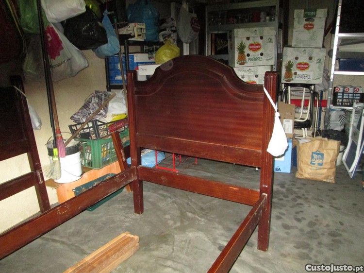 2 camas de solteiro, em castanho, como novas, com 1,85m x 1m, com todas as peças, por 90,00