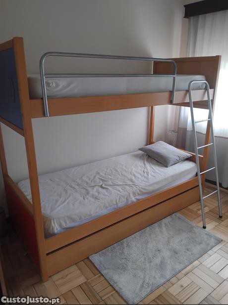 Preço: 300 €Beliche+ 2 colchões + 2 mesinhas e comoda