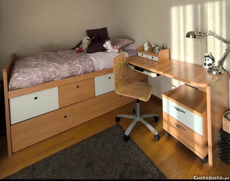 Preço: 400 €Cama dupla solteiro com secretária integrada + cadeira