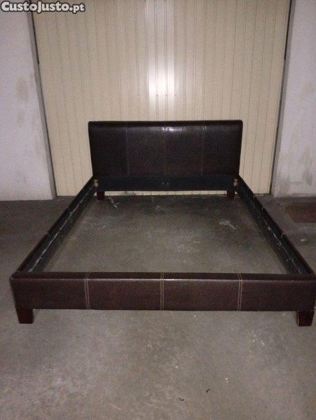 Cama 160x200, revestida a pele em muito bom estado, com estrado. Temos também o colchão se optar.