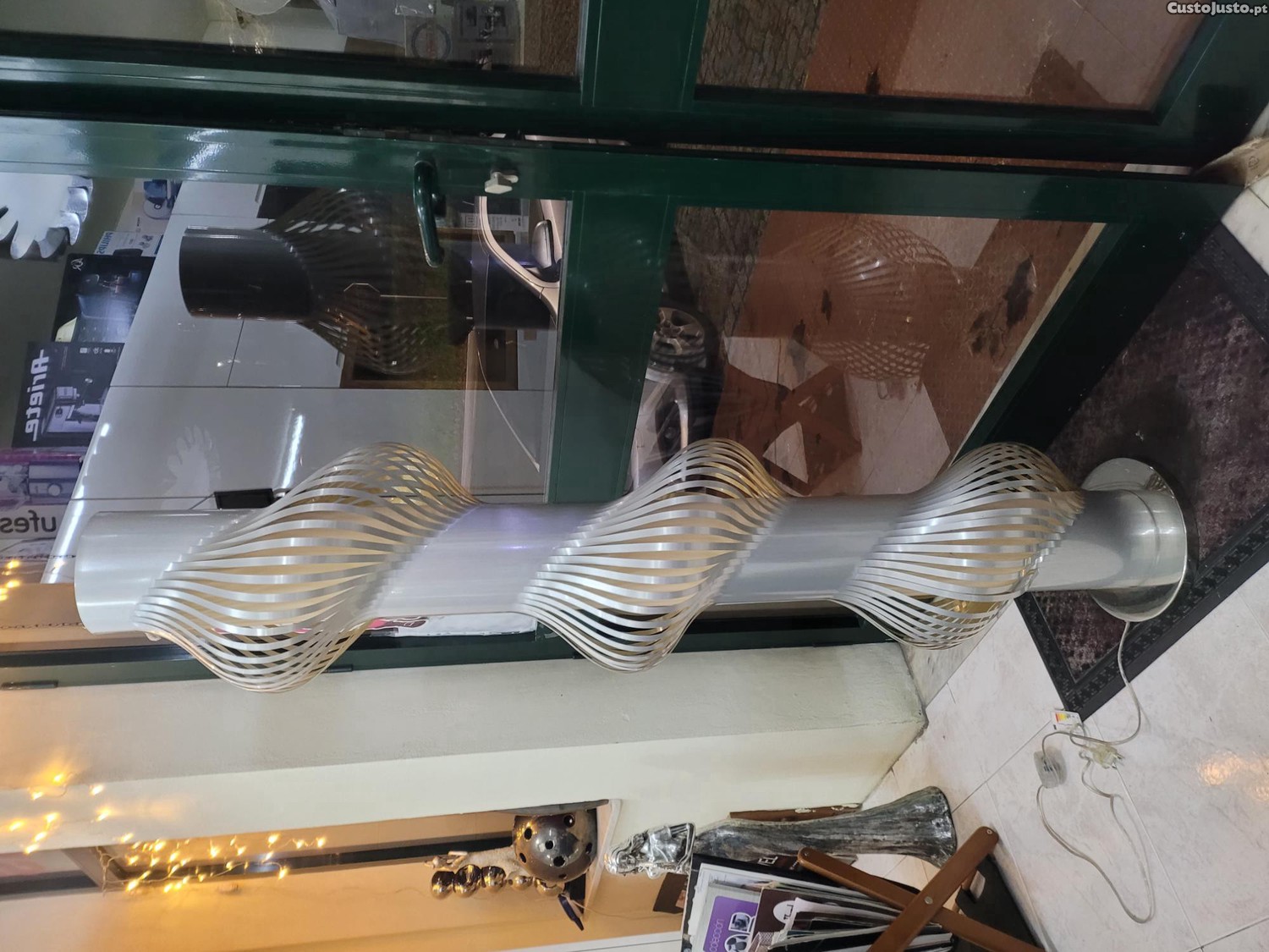 Candeeiro alto com um design moderno e elegante. A sua estrutura em plástico e metal confere-lhe um aspeto sofisticado.