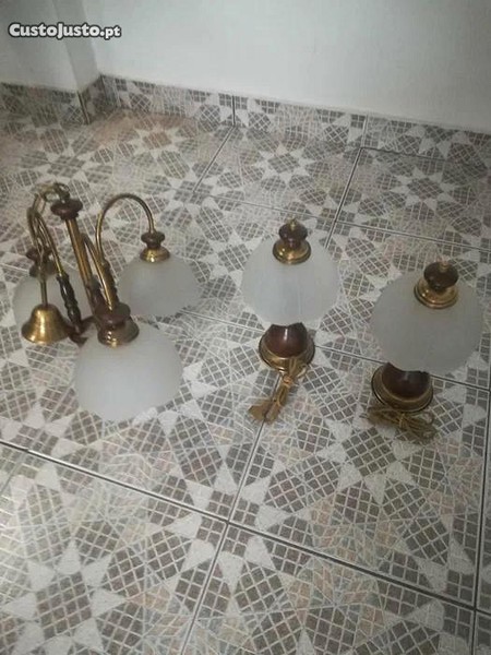 Candeeiro de quarto com dois candeeiros de mesinha de cabeceira em bom estado e a bom preço.