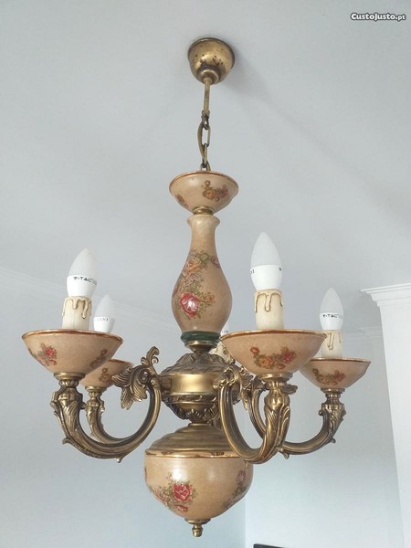 Preço: 75 €Candeeiro de tecto em porcelana e latão com 5 braç