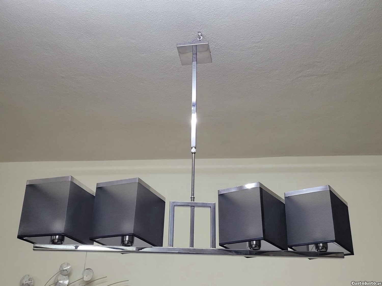 Candeeiro de teto moderno com quatro mini abajures retangulares.