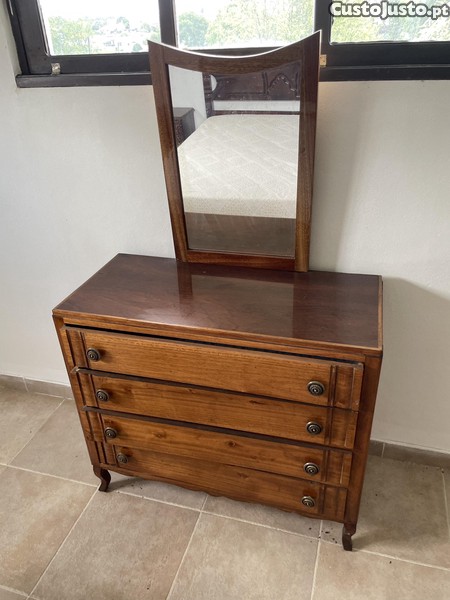 Vende-se cômoda clássica em madeira, com 4 gavetas espaçosas e espelho integrado. Peça elegante e funcional, ideal para quartos ou espaços de arrumação, combinando charme tradicional com utilidade. Em bom estado de conservação.