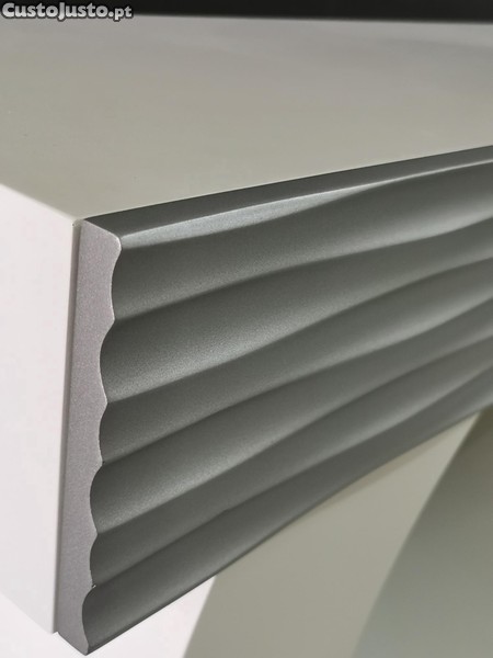 Consola MDF Lacada Matte Branca com Gavetas Prateadas