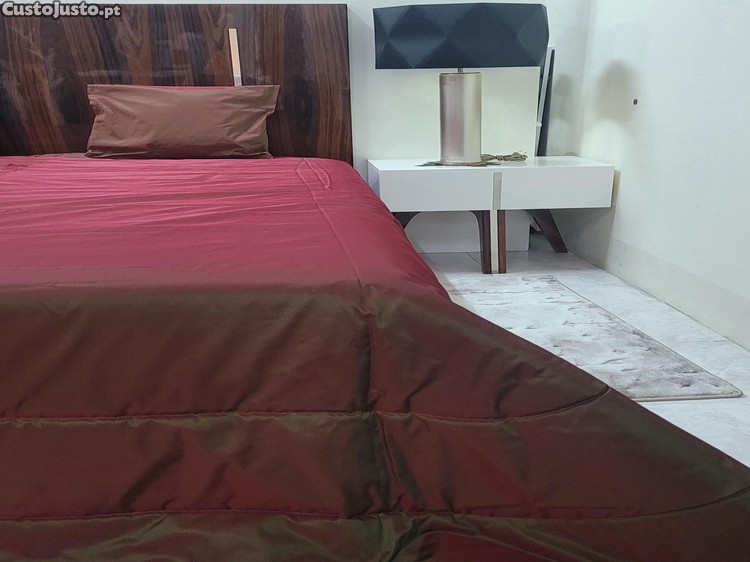 Edredão Siena, dupla face, com tons de vermelho e castanho. Ideal para dar um toque de elegância ao seu quarto.