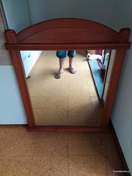Espelho com caixilho em madeira maciça.