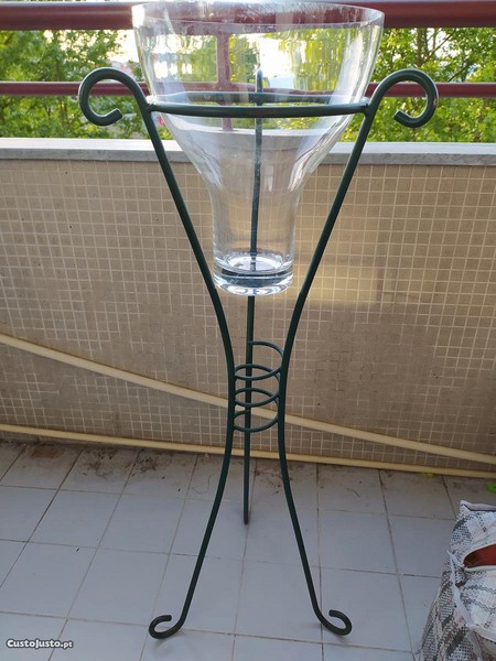 Vendo conjunto de floreira usada em bom estado. O conjunto é constituído por suporte em ferro forjado cor verde + vaso em vidro.