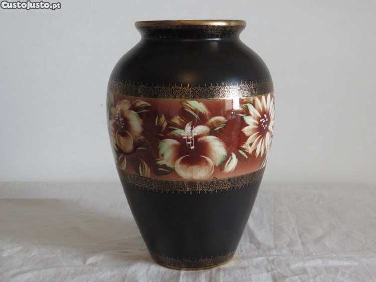 Peça única e numerada, da fábrica OAL, com decoração floral pintada à mão e detalhes dourados.