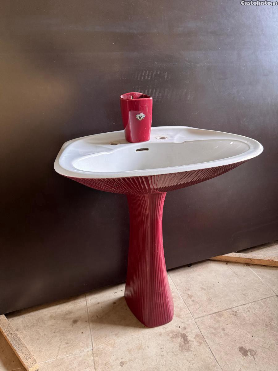 Vendo este lavatório com coluna vermelho loiça com a oferta do suporte para as escovas de dentes a um preço negociável, tanto na entrega como no valor (realizo entregas).